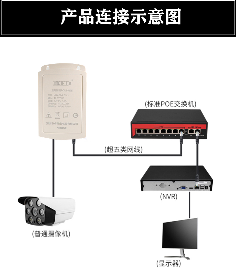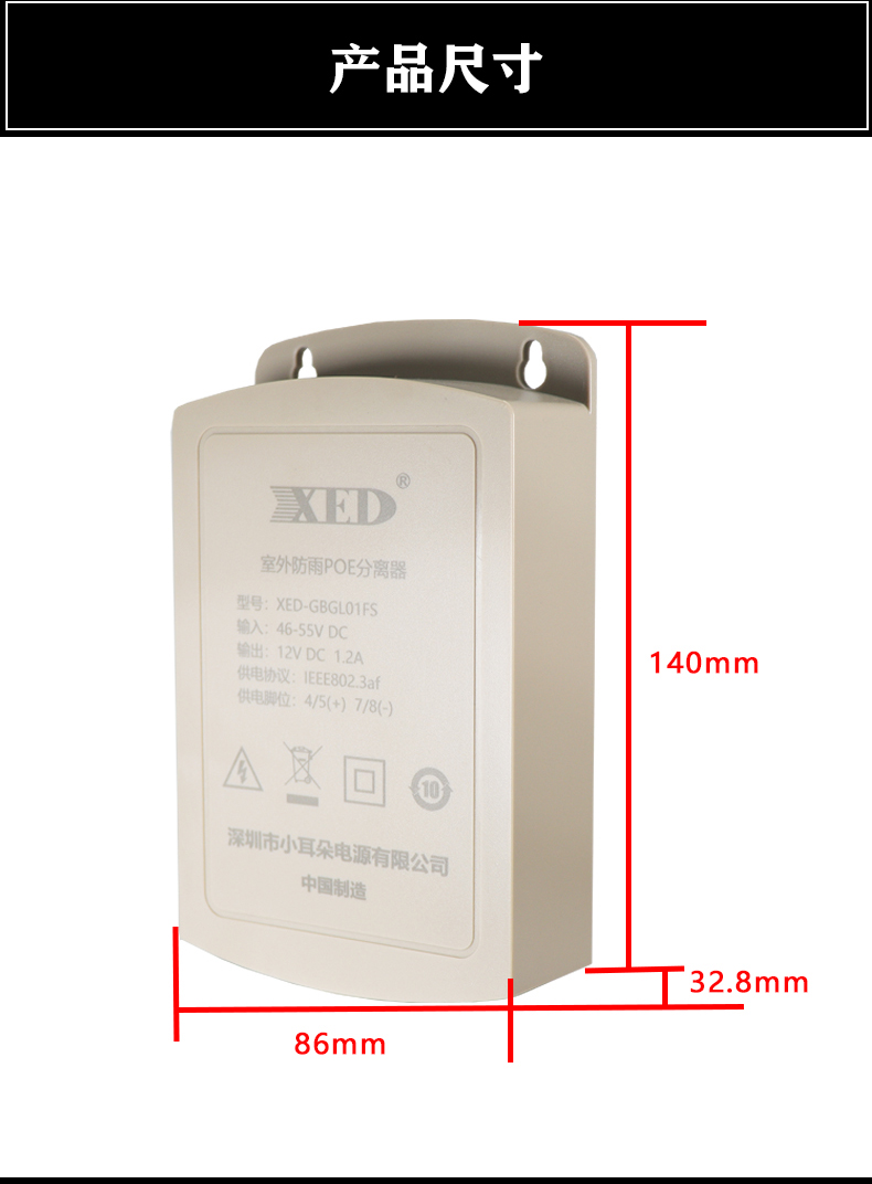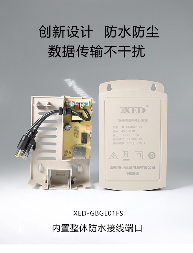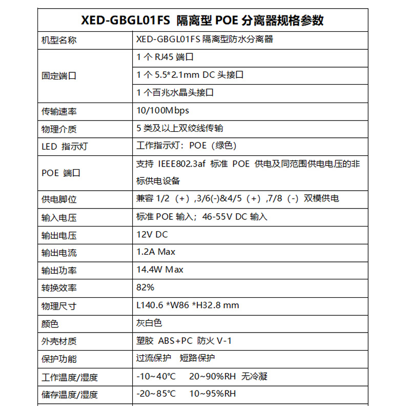 帶隔離的標(biāo)準(zhǔn)PoE分離器,電壓DC46-55V 1.2A。