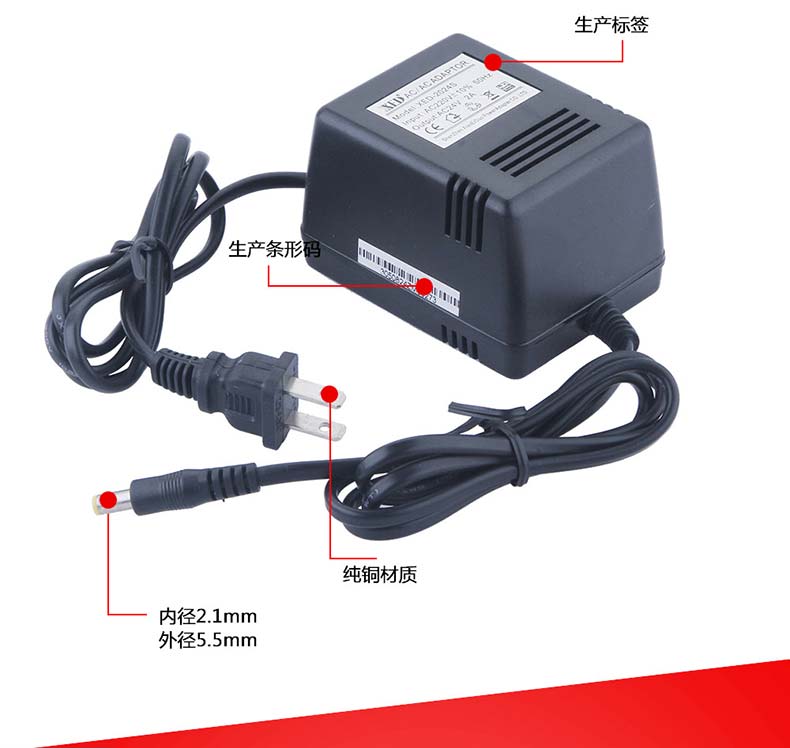 XED-3024S低壓AC/AC電源,AC24V低壓輸出電壓,變壓器電源適配器。 產品應用領域: 可適用范圍一般用于小型設備,或者安全特低電源等級產品。 產品特點: 采用純銅,優質鋼片繞線制成,功率充足,溫度低,抗沖擊性能好。 自身的干擾和噪聲都比較小,可以達到很高的穩定度,波紋較小。