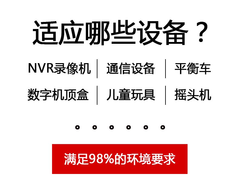 可適用范圍監(jiān)控安防、軍工設(shè)備、科研設(shè)備、LED照明、工控設(shè)備、通訊設(shè)備、電力設(shè)備、儀器儀表、工業(yè)自動(dòng)化控制、數(shù)碼產(chǎn)品、視聽產(chǎn)品和儀器等。