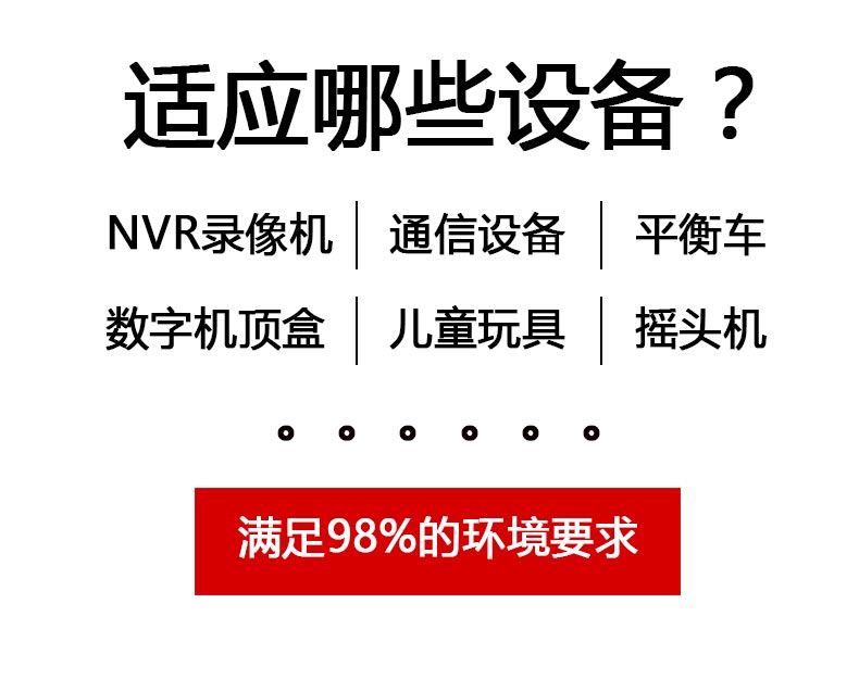 可適用范圍監(jiān)控安防、路由器、網(wǎng)絡(luò)交換機、考勤機、指紋考勤機、廣告機、顯示器、功放、工控設(shè)備、科研設(shè)備、儀器儀表、通訊設(shè)備、數(shù)碼產(chǎn)品等。