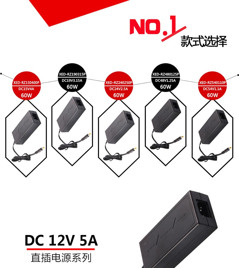 XED-RZ150400P品字尾電源適配器,60W桌面式電源適配器,能過6級能效,通過多國認證。