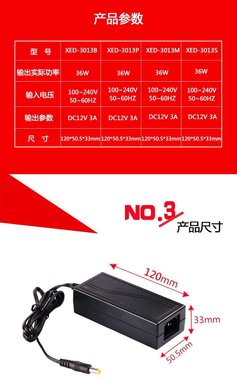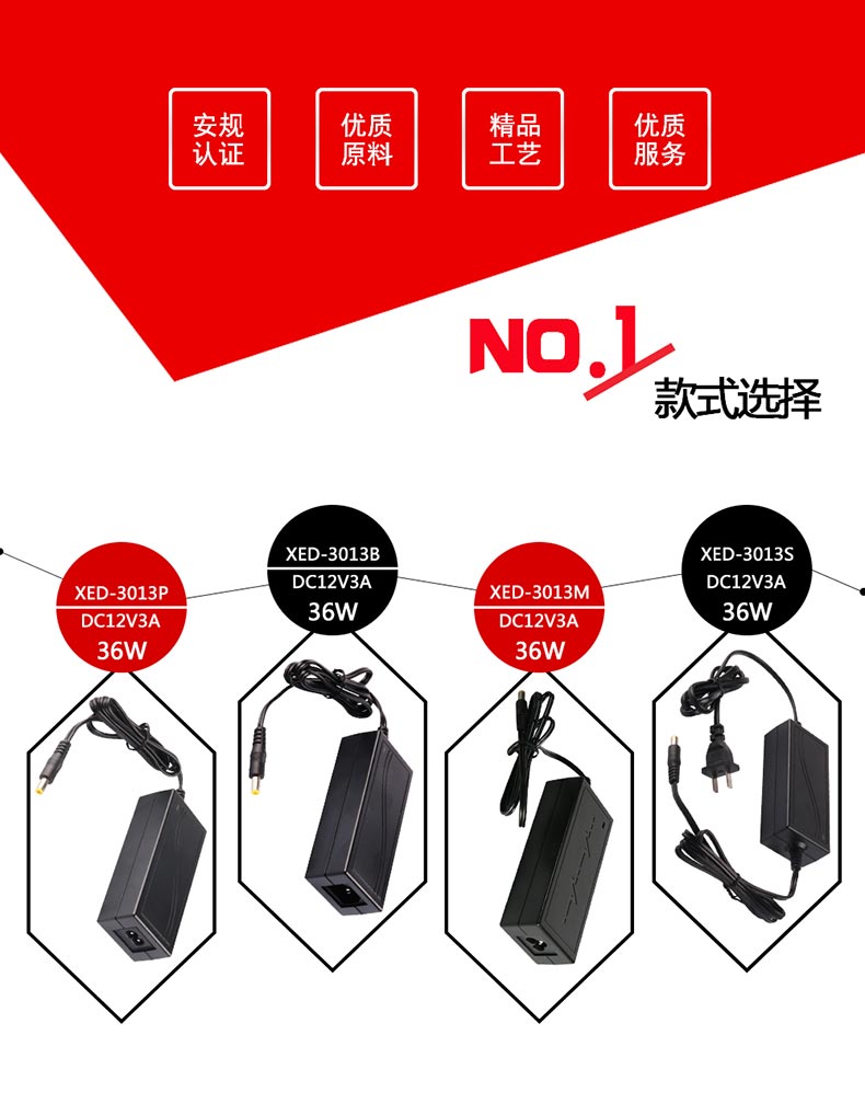 XED-3013S雙線監控電源適配器,36W桌面式電源適配器。