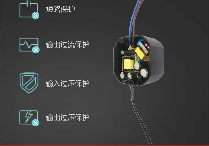 小型化開關電源,寬電壓輸入,穩(wěn)壓精準;具有過載、過壓、短路、過熱等多重保護;防水等級IP67。