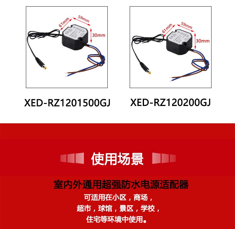 XED-RZ1201500GJ防水灌膠電源,采用AB膠材質加工而成,具有防水、防潮、防塵功能。